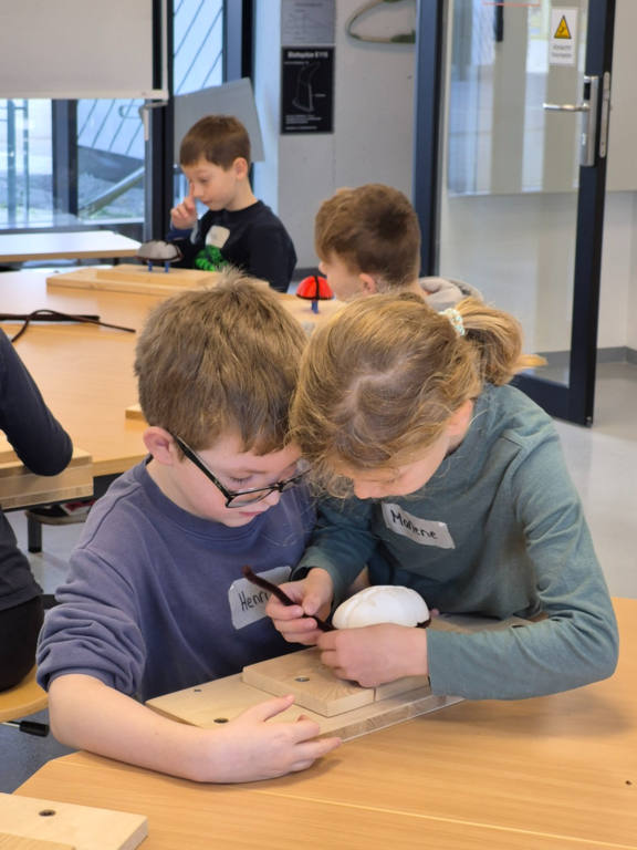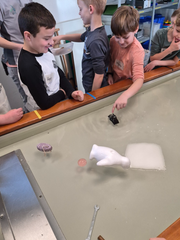 Heute besuchten die Klassen 2a und 2b das ZNT im EEZ. Dort nahmen die Kinder an zwei spannenden Projekten teil: Beim „Eidechsenbau“ lernten sie verschiedene Werktechniken kennen und bauten ein eigenes Modell. Im Projekt „Schwimmen und Sinken“ forschten sie zu den Eigenschaften unterschiedlicher Materialien und konstruierten eigene Boote aus Alufolie.